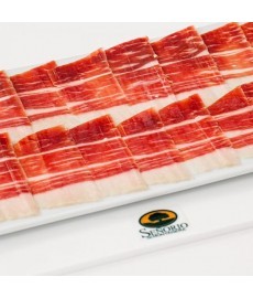 Jamón ecológico ibérico de bellota loncheado a cuchillo, listo para ser disfrutado por los paladares gourmets preocupados por una alimentación natural.